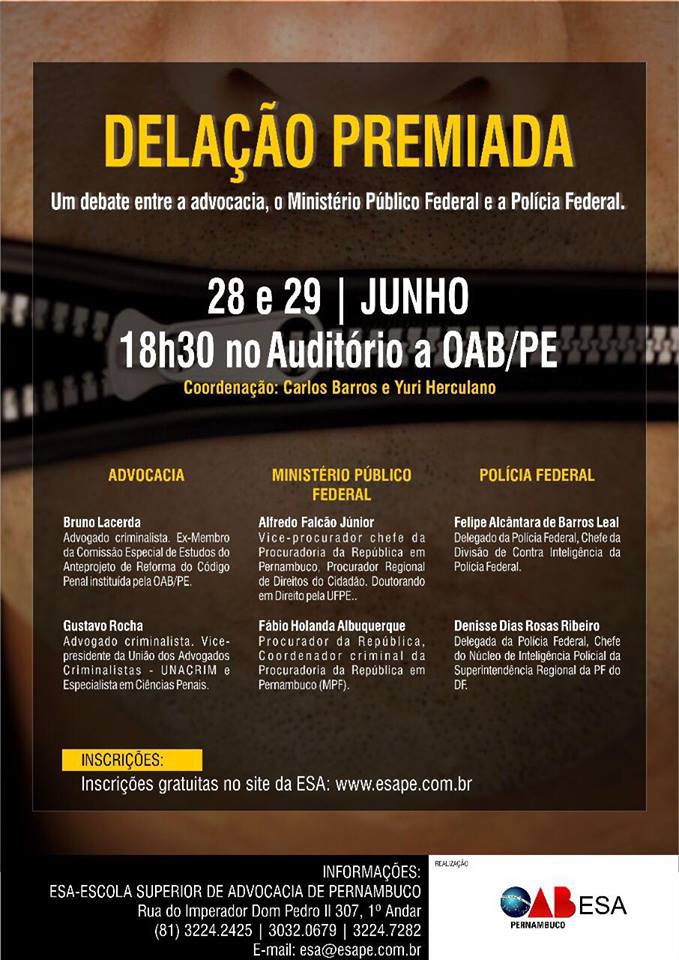 O advogado GUSTAVO ROCHA será um dos debatedores nesse grande evento que congregará a Advocacia, o Ministério Público Federal e a Polícia Federal.